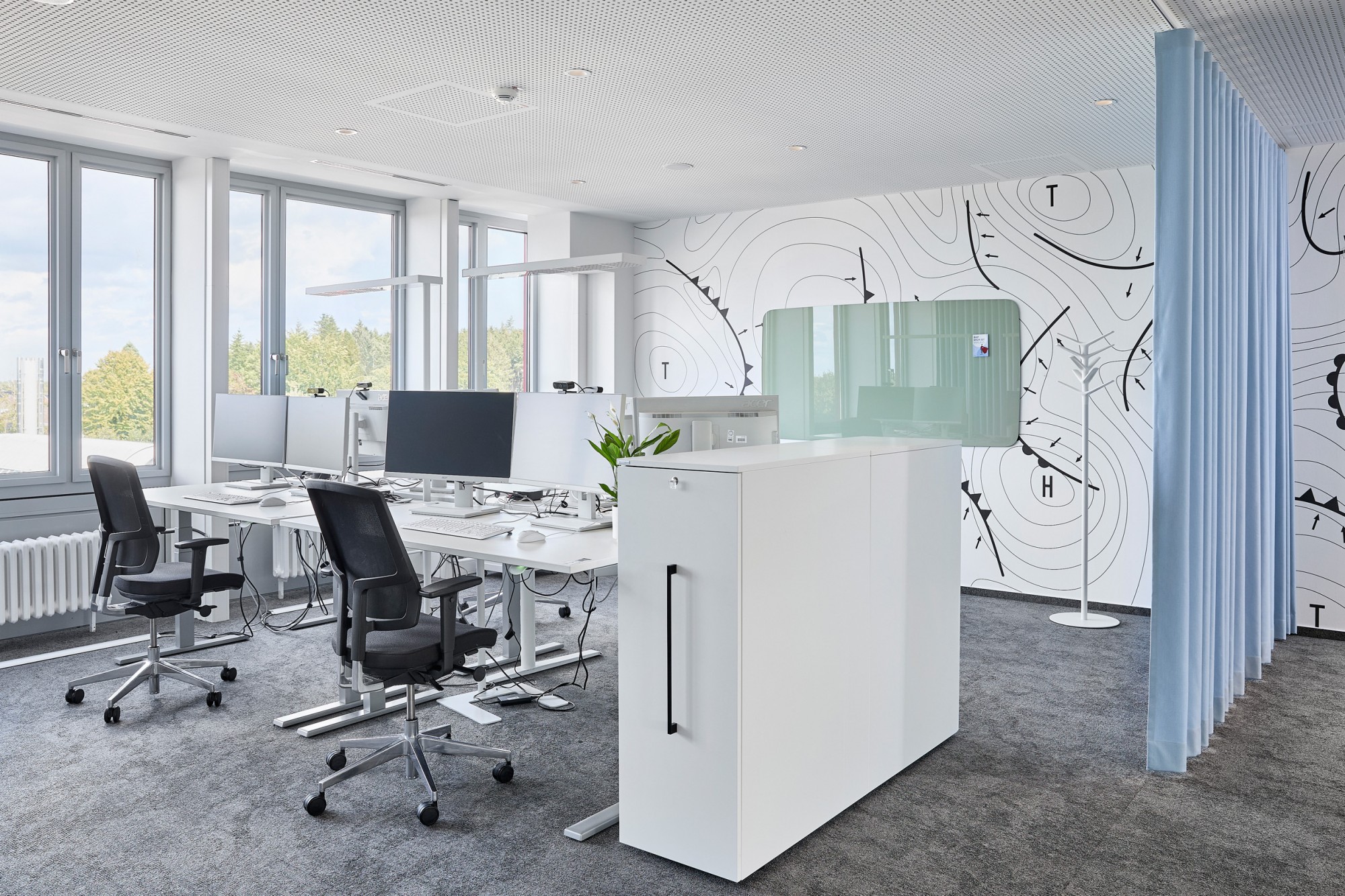 Durch gezielte Zonierung und Gestaltung entstehen auf der Open Space Fläche unterschiedliche Arbeitsbereiche, die sich an die wechselnden Bedürfnisse der Nutzer:innen anpassen und den täglichen Arbeitsalltag optimal unterstützen.