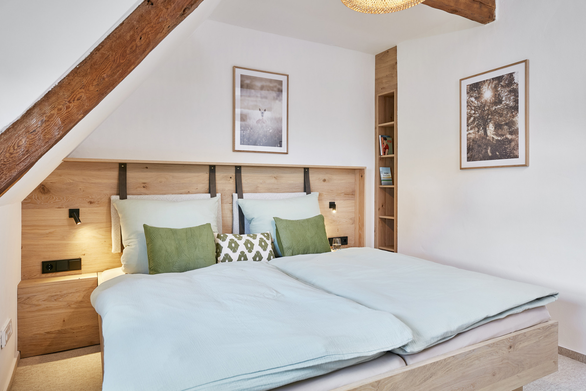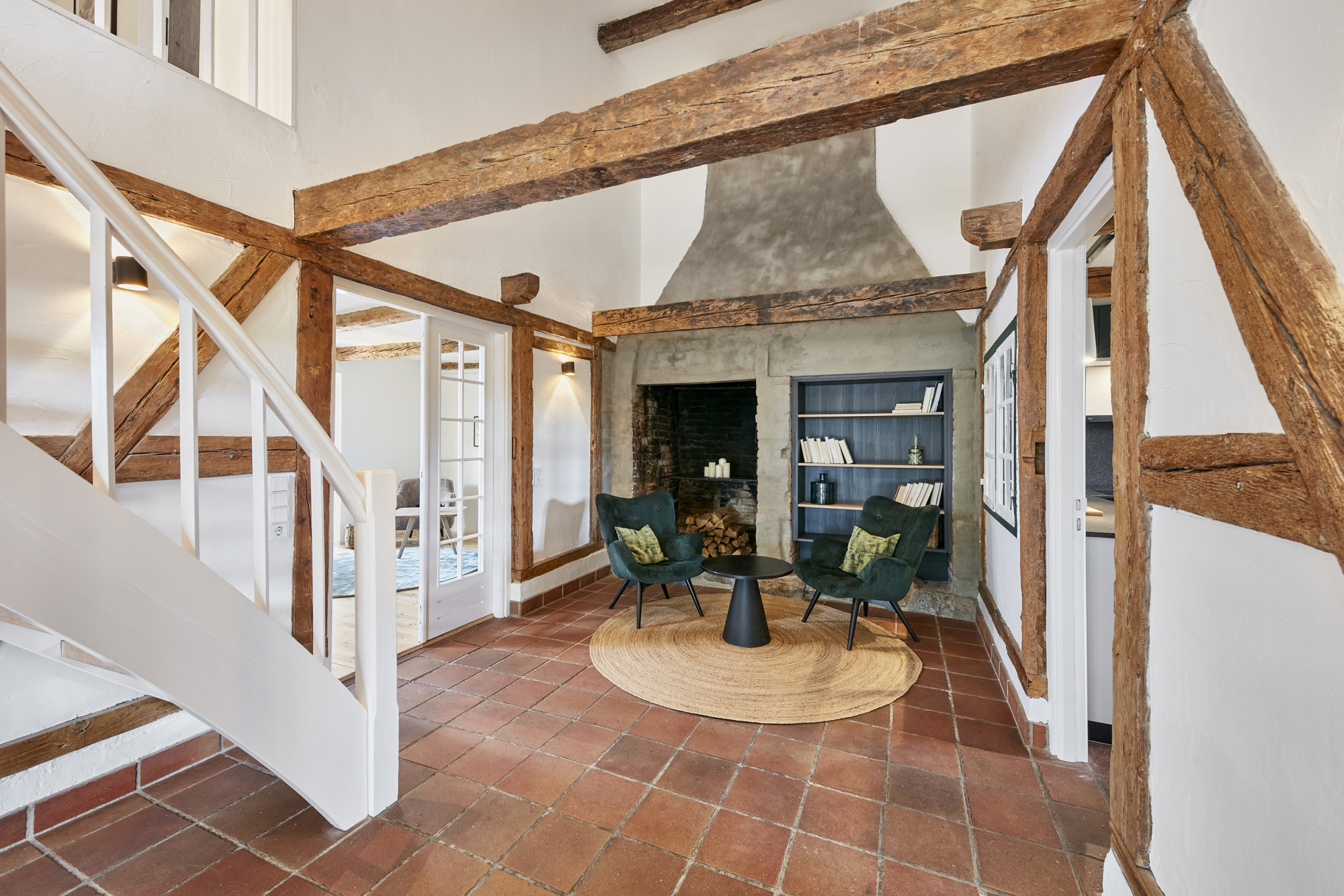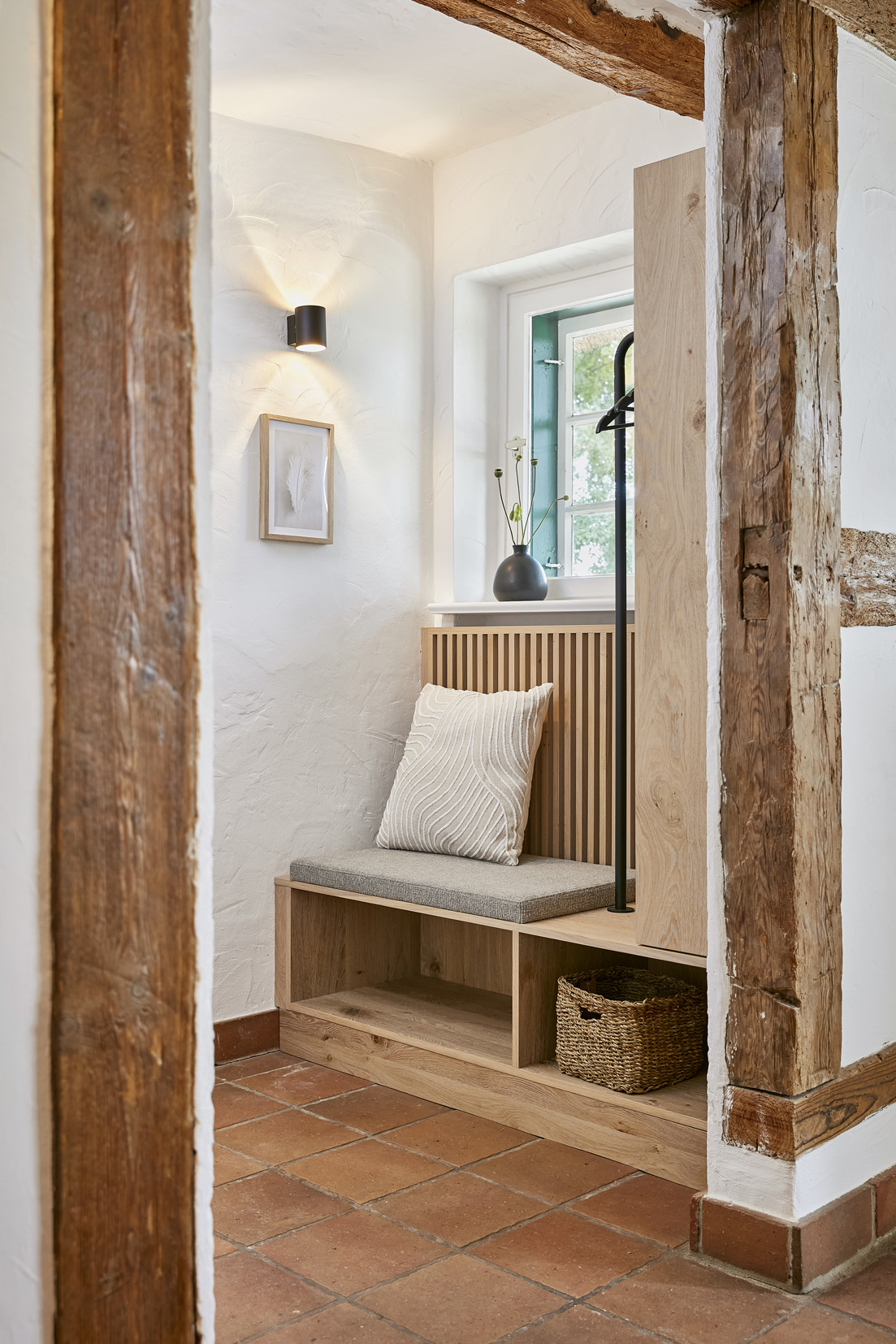 Auszeit auf dem Land! In der Reetdachkate in Oldenburg i. H. entsteht eine Ferienwohnung, die zum Ausspannen einlädt. Durch einen Umbau wurden drei Schlafzimmer mit maßgefertigten Einbauten und natürlichen Materialien realisiert. Der besondere Charme des Gebäudes mit historischer Balkenlage und Kamin bleibt erhalten und wird mithilfe von individuellen und modernen Einbaumöbel in Szene gesetzt. Es entsteht ein harmonisches Zusammenspiel von historischem Bestand und Modernität.