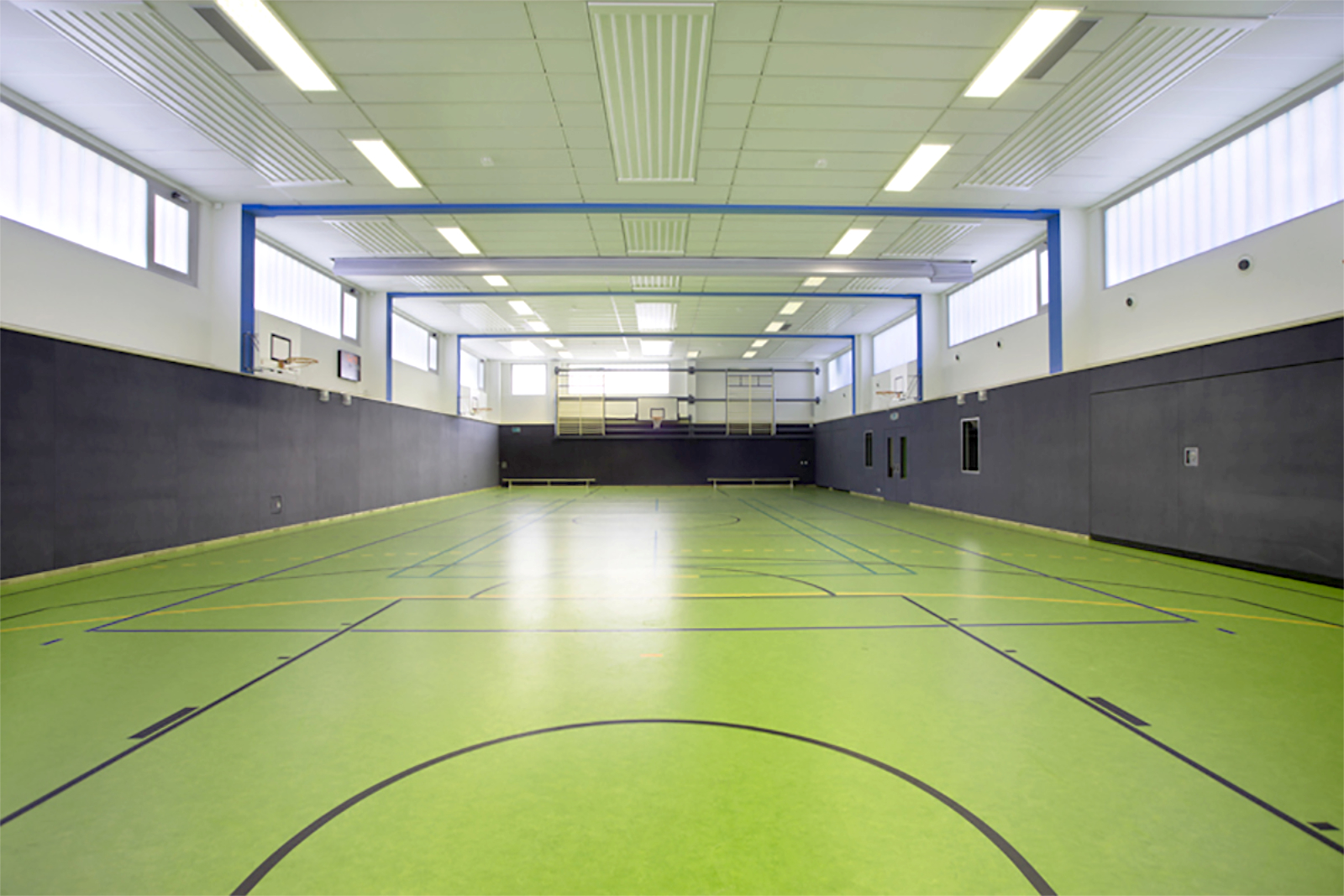 Der grasgrüne Linoleumboden in der Halle sorgt für die nötige Frische beim Sportunterricht.
